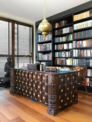 Biurko wykonano z palisandru z ozdobnymi okuciami z mosiądzu. Ma imponujące wymiary: długość 180 cm, szerokość 87 cm i wysokość 77 cm, a waży ponad 200 kg. Jak podkreśla Martyna Wojciechowska, biurko pochodzi z Radżastanu, a jego delikatne uszkodzenia dodają mu charakteru i świadczą o intensywnym użytkowaniu.
