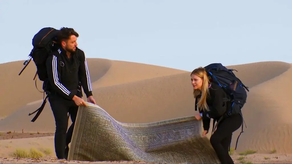 W półfinale "Azja Express" uczestnicy spotkali się w Uzbekistanie. Andziaks i Luka, Paulina Krupińska-Karpiel i Izabela Połeć, Reni Jusis i Remigiusz Dorawa mogą zakwalifikować się do finału programu. Zmagania trzech par rozpoczną się na bezkresnej pustyni. Duety będą musiały pokonać ruchome piaski na... latającym dywanie. Dodatkowo w międzyczasie rozplątać węzeł z jedwabnej nici. Kto jako pierwszy wykona to zadanie?