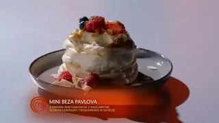 - Jak się przejadę na tej konkurencji, to będzie wstyd, bo tę bezę robię praktycznie co miesiąc - zdradził Bartłomiej na począku zadania. W planach była beza Pavlova z kremem śmietankowym z mascarpone, słonym karmelem i truskawkami w miodzie. Los bywa jednak przewrotny i deser okazał się surowy, podobnie jak decyzja jury, które od razu wysłało Bartłomieja pod balkon.