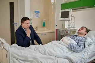 Michał (Robert Kudelski), przejęty stanem zdrowia swojego pracownika, który spadł z rusztowania, oznajmia Klaudii, że póki co nie może jechać z nią do SPA. Grzesiak próbuje namówić go do zmiany decyzji, ale widząc, że nic nie wskóra, robi z siebie oddaną przyjaciółkę. Jakiś czas później Brzozowski razem z ukochaną przychodzą do szpitala, gdzie leży poszkodowany pracownik, którego Michał zapewnia, że może liczyć na wsparcie ze strony firmy.